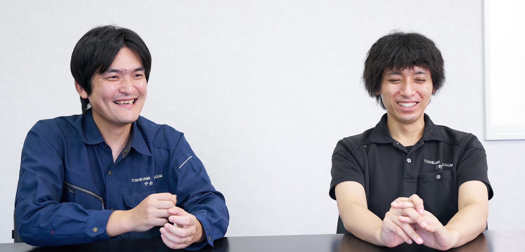 普段、僕たちが向き合っているのは真空装置の一部品で、それだけ見ても、何の役に立つものなのか、いまいちピンとこないけど、実際は国内外の製造業をはじめ、あらゆる分野で数多く使われていて、ひとつ一つは小さいものでも、どれひとつとして欠かすことのできない重要なパーツなのだということに、あらためて気づいたのは、入社してからだね。